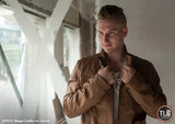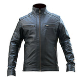 Nappa leather biker jacket made of sheepskin leather. Features a tailored slim fit, round collar, zip fastening in the front, two side zippered pockets, two front zippered chest pockets, snap button cuffs, light weight lining and inside pocket.